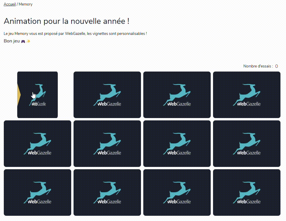 Captivez vos visiteurs avec un jeu Memory entièrement personnalisable, directement intégré sur votre site internet.
