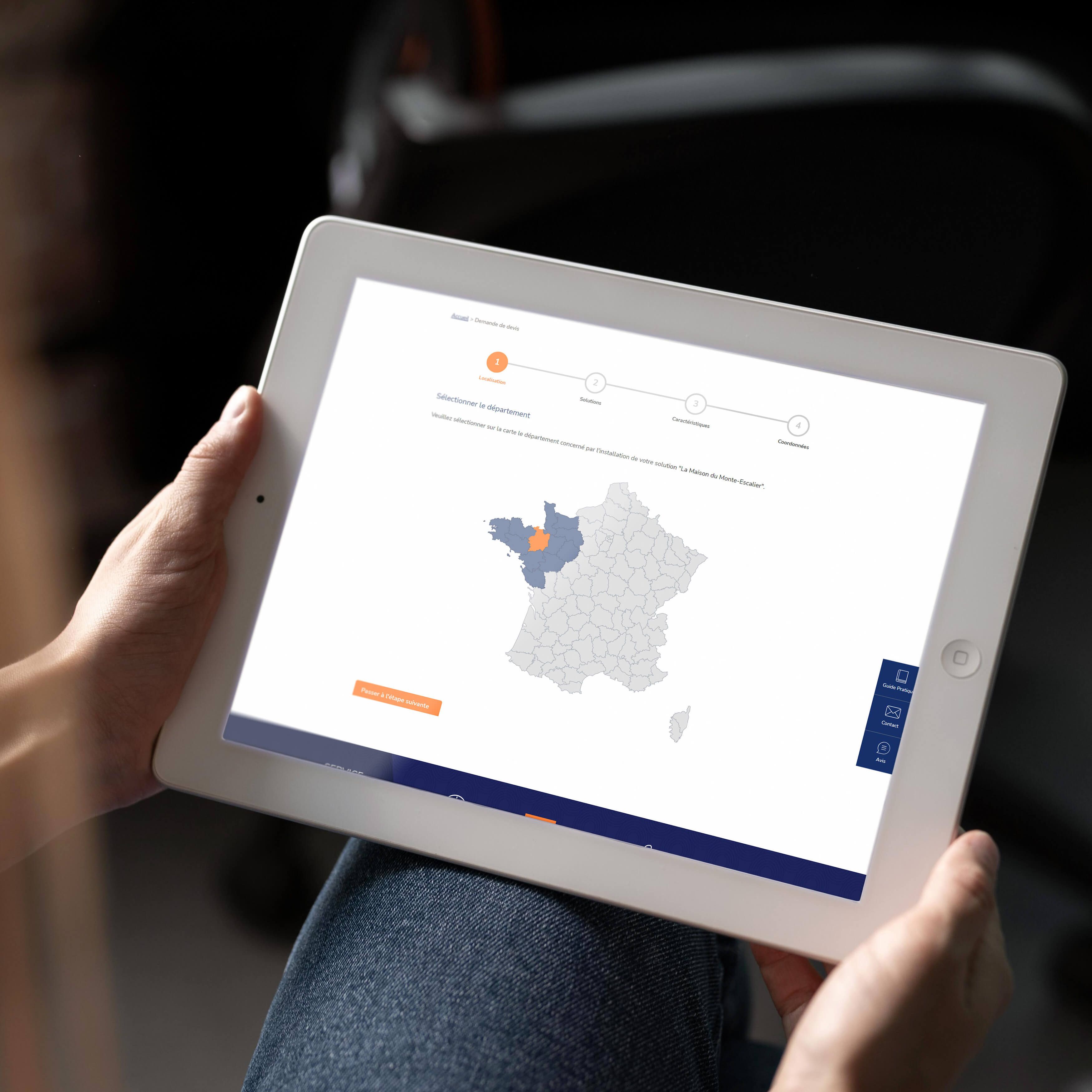 • Une carte avec des zones cliquables (région, département, zone géographique…) pour une meilleure visualisation et une saisie facilitée sur téléphone mobile