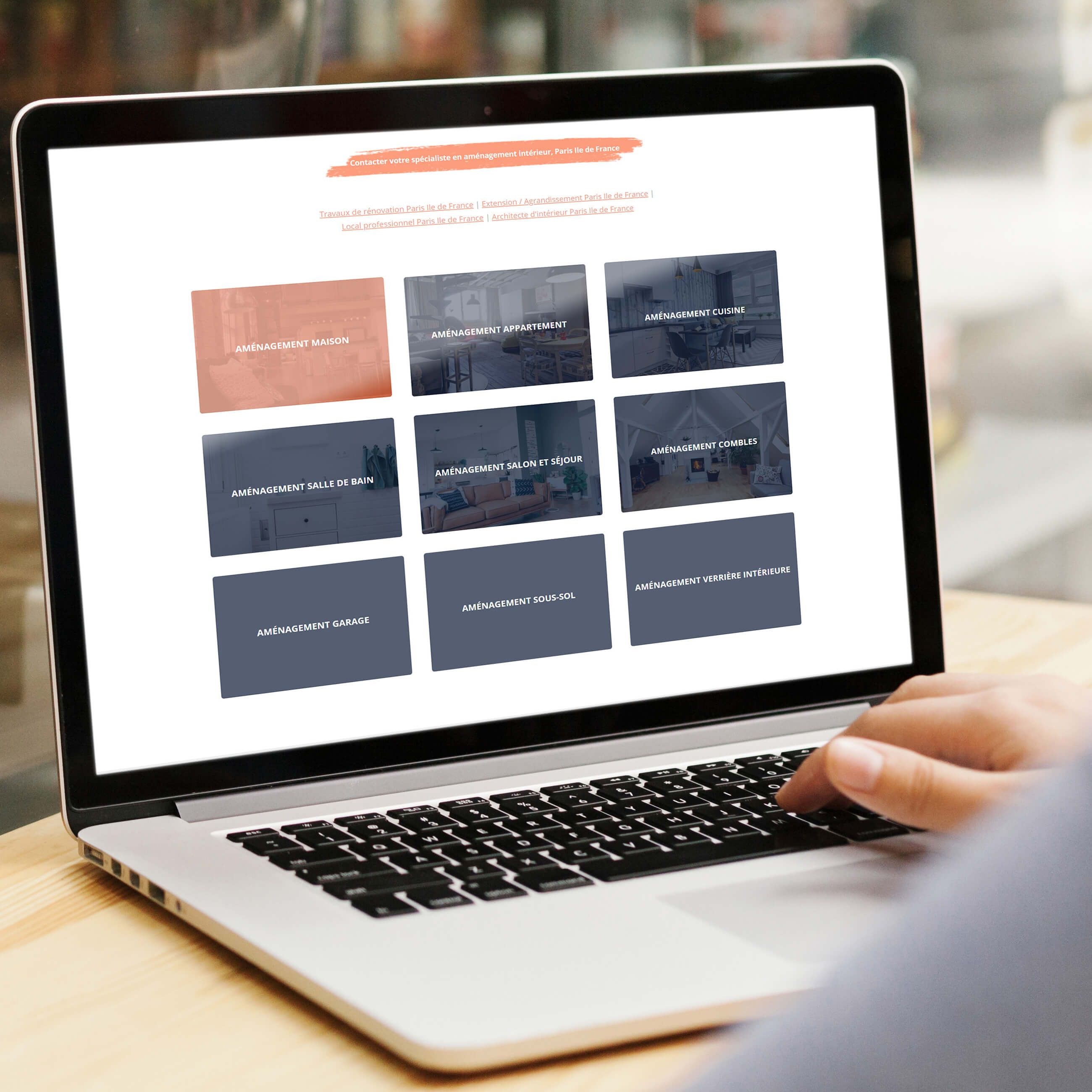 L’option Maillage interne de WebGazelle vous permet d’afficher sous forme d’encarts cliquables sur la page de niveau 1 (la catégorie) l’ensemble des pages de niveau 2 (les prestations associées) de manière lisibles et engageantes.